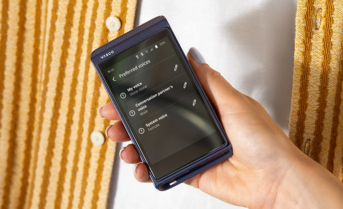 Pre tých, ktorí si radi vyberajú. Okrem revolučnej funkcie Vasco My Voice si môžete pre niektoré jazyky na čítanie prekladov zvoliť aj klasický mužský alebo ženský hlas. To vám umožní prispôsobiť hlas akejkoľvek situácii. Dávate prednosť formálnemu tónu pre obchodné schôdzky alebo niečomu vrelejšiemu pre rodinné rozhovory? Váš prekladač, vaše pravidlá.